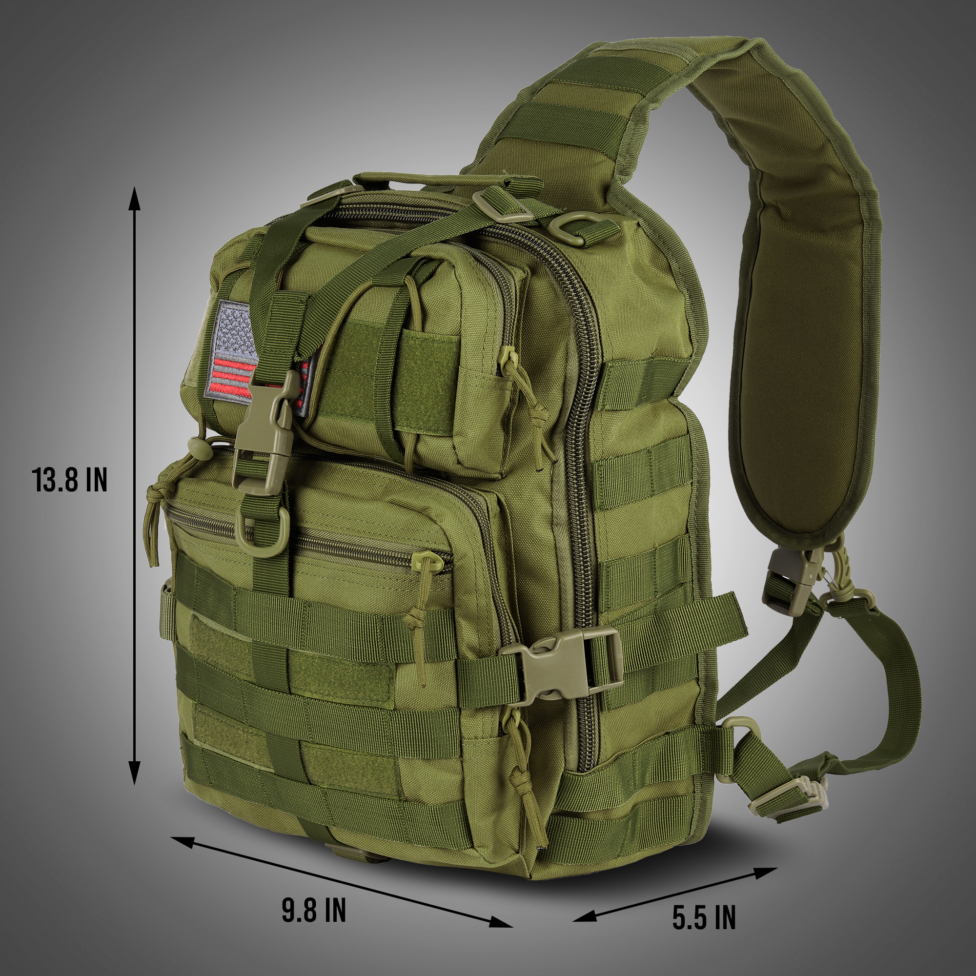 • SMALL & LIGHTWEIGHT: This tactical sling bag measures at 13.75 x 9 x 5 inches and has a volume of about 14 liters. This is the perfect small tactical backpack for men.